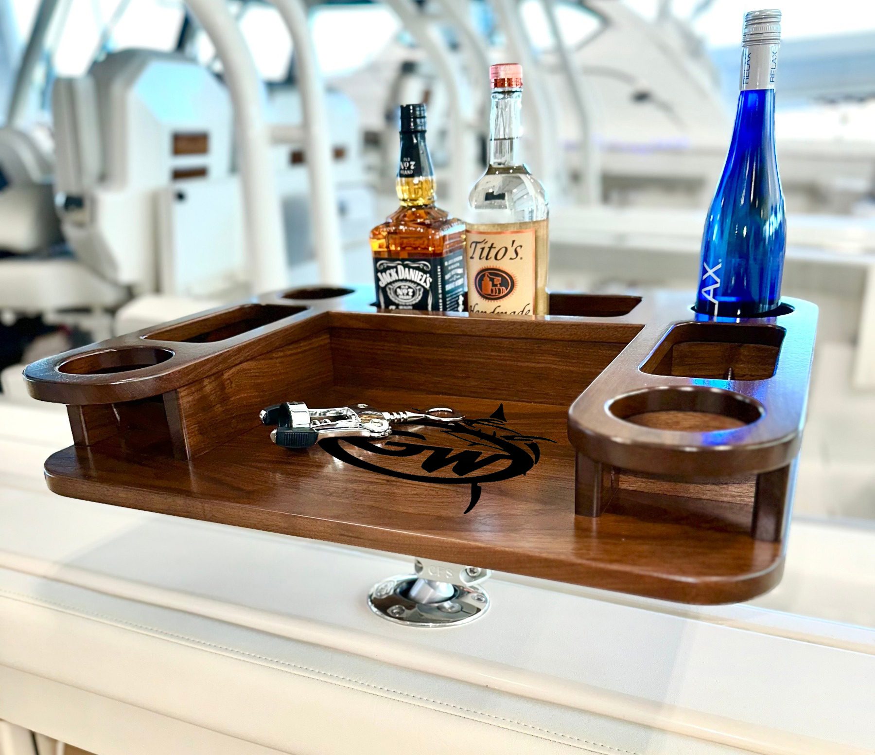 Elevate your time on the water with our gunwale-mount mini bar—giving you a durable, refined space to keep drinks and essentials within easy reach.